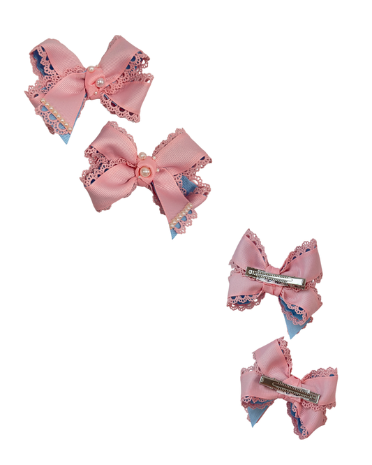 Cotton Candy Pearls Hair Bow Set