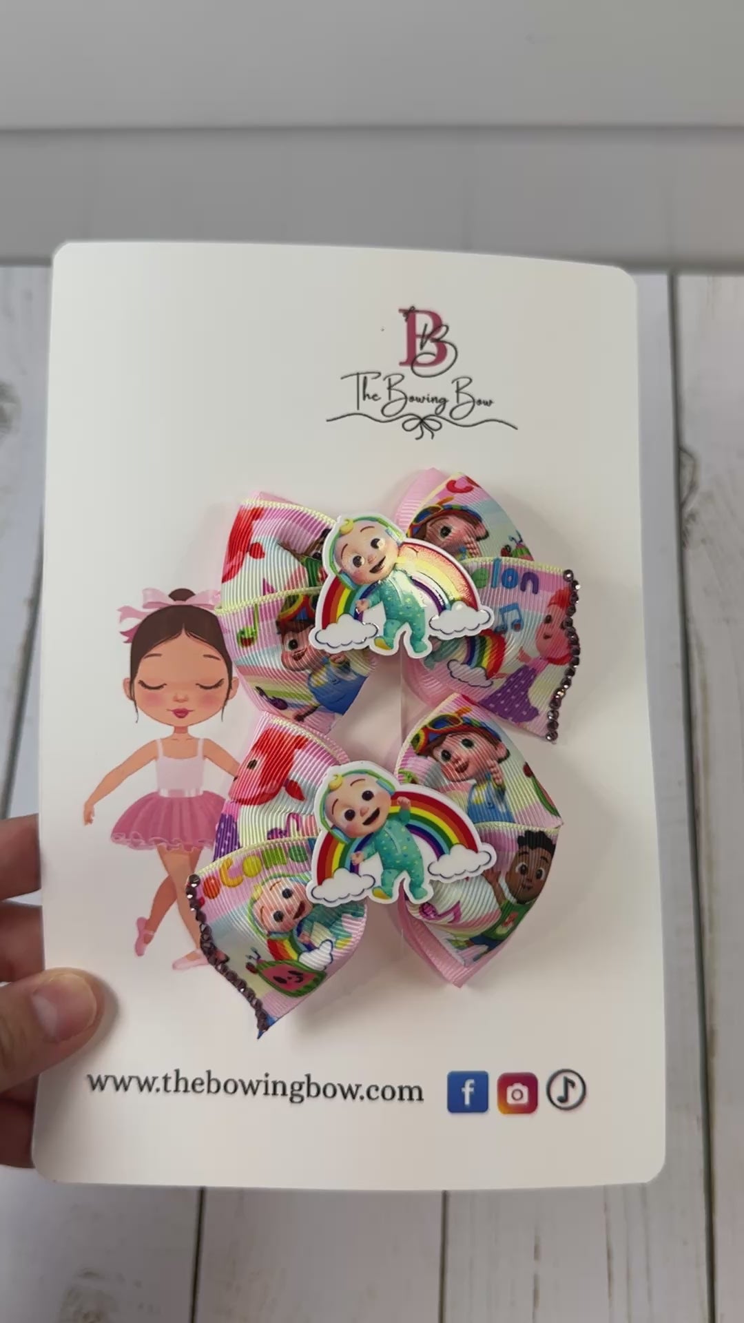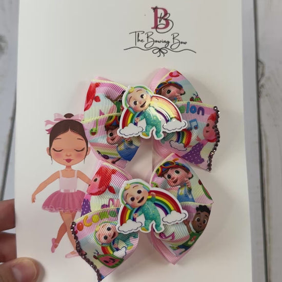 Mini coco melon hair bow. Measures 3 inches wide. Baby size. If you need a Nylon headband to use the pair of bows as a headband please make sure to add it to your order.