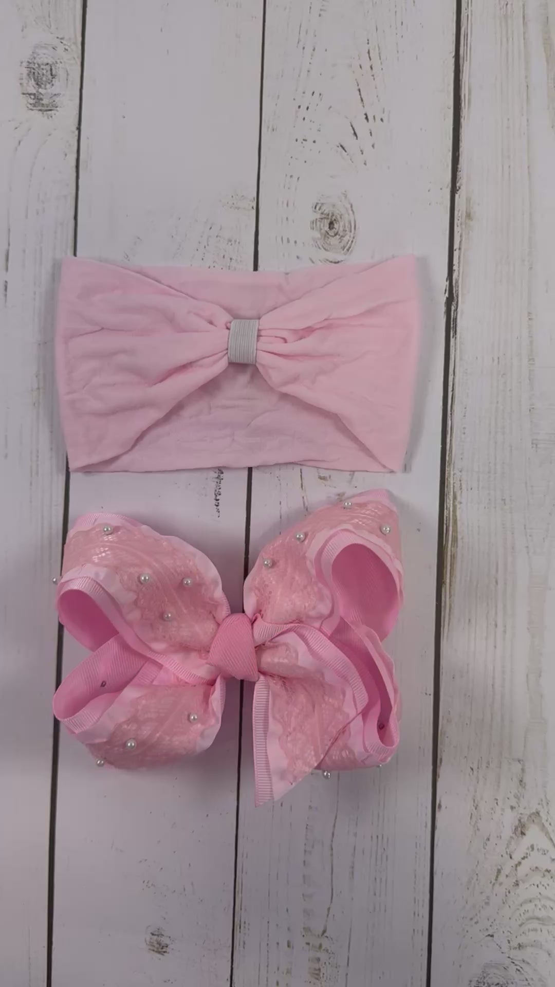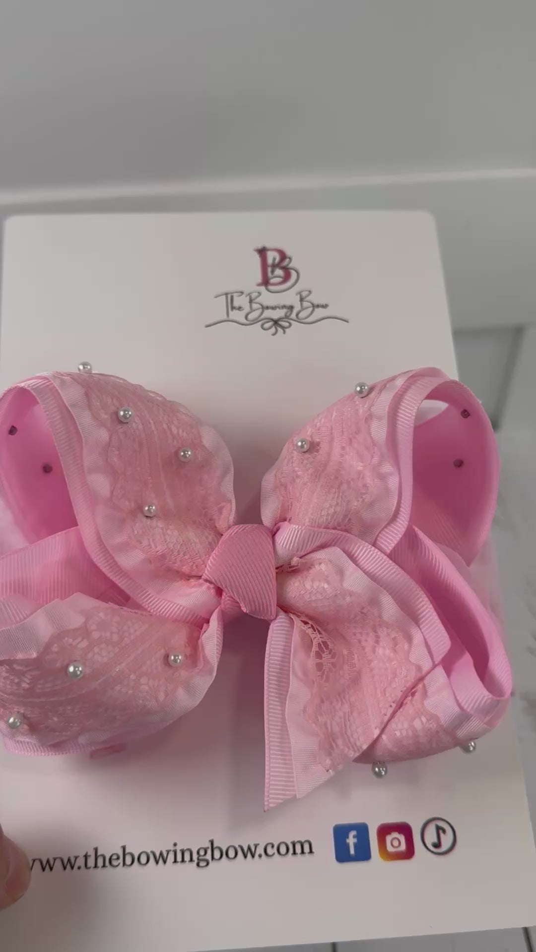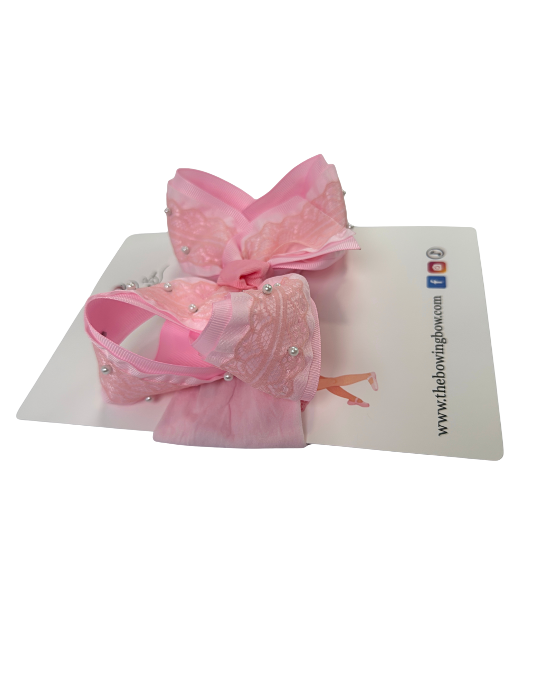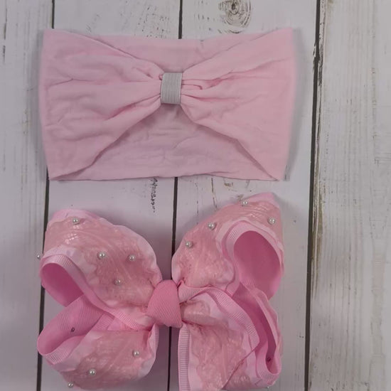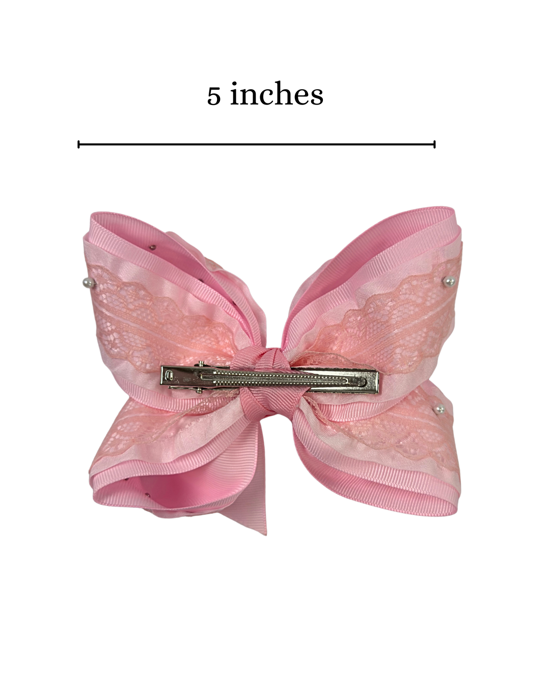 This 5 inches Boutique on lace and ruffle ribbon on a gross grain comes on an alligator clip and available with a headband if you want it for your little one.