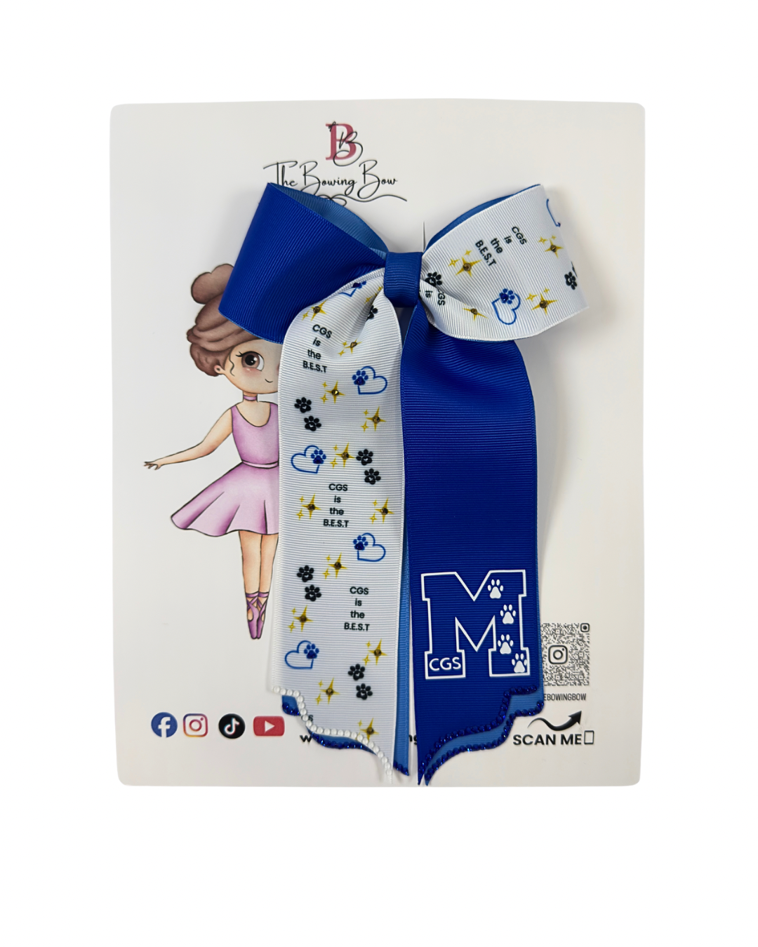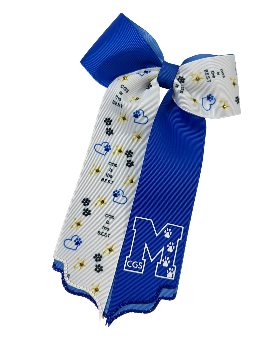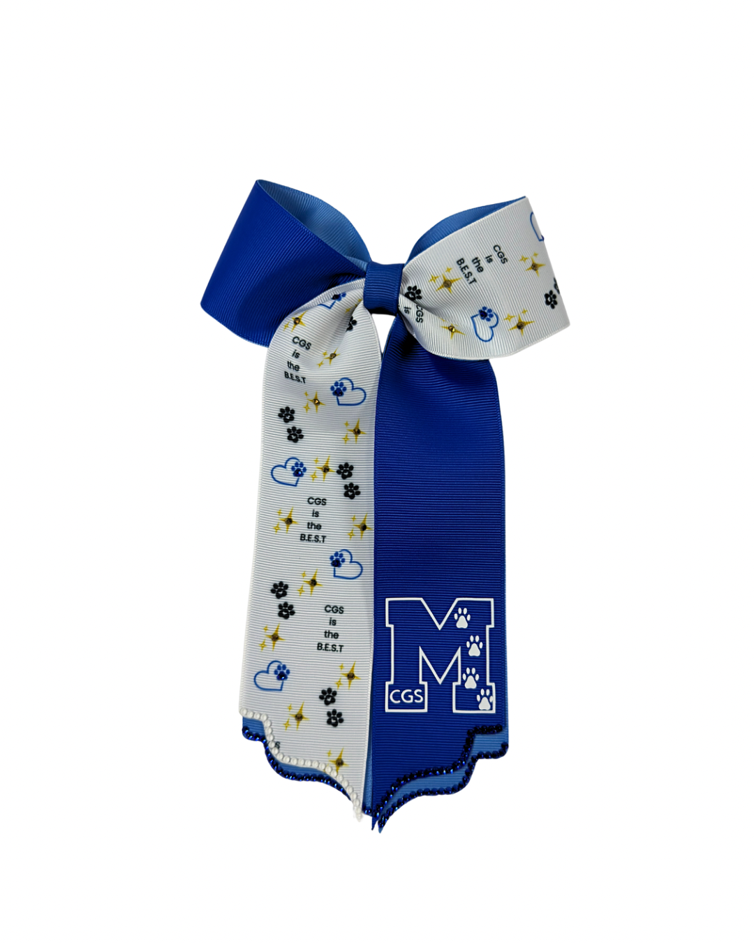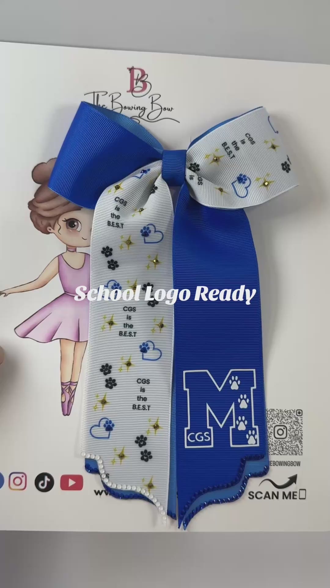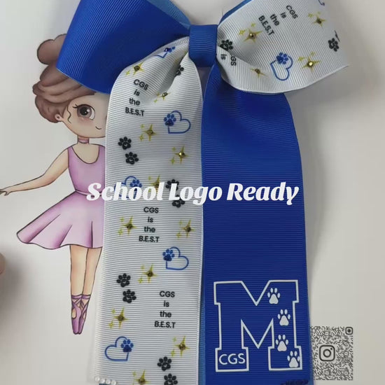 You get to decide the color of your ribbons, the logo of your school, the print on the ribbon even the rhinestones on the ribbons. Contact me first before paying though instagram: @thebowingbow or email: info@thebowingbow.com