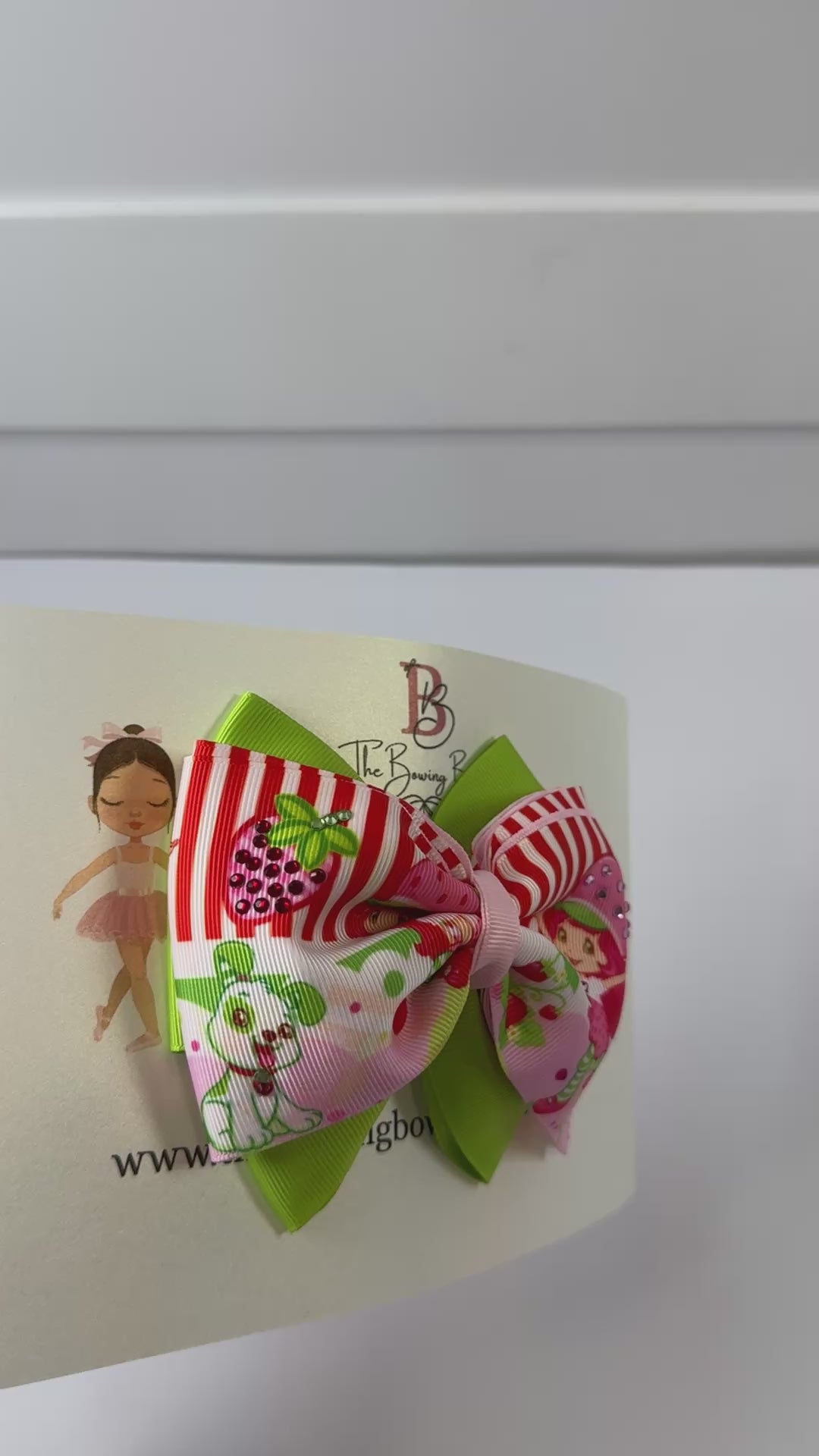 Hair Bow inspired in the Strawberry Shortcake girl. Perfect for any little girl 4 years or older. If you want a little girl to use it with a headband just let me know and I make one for you.