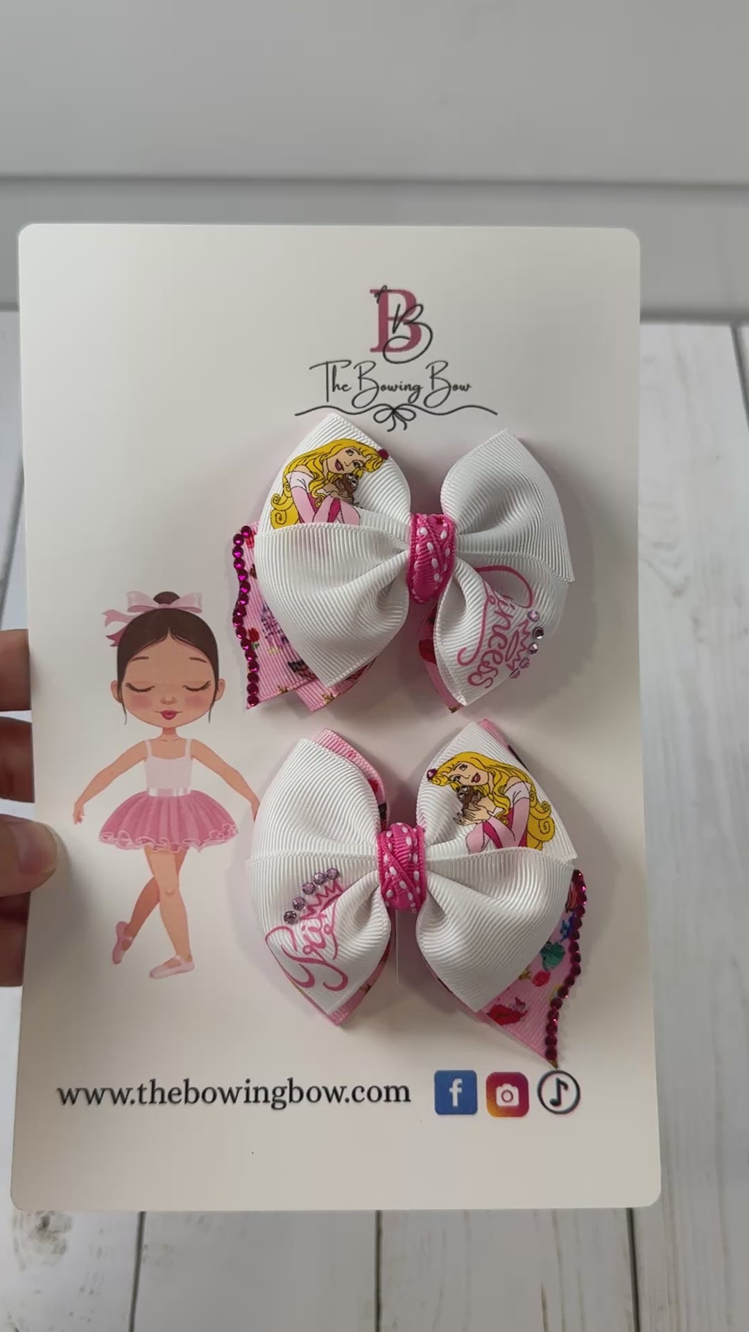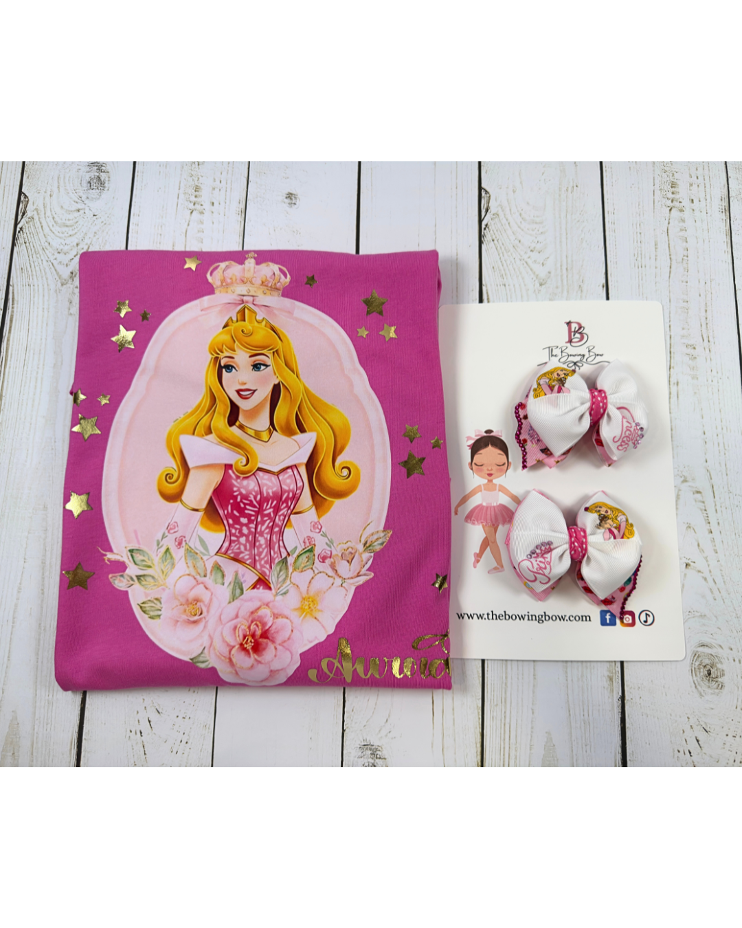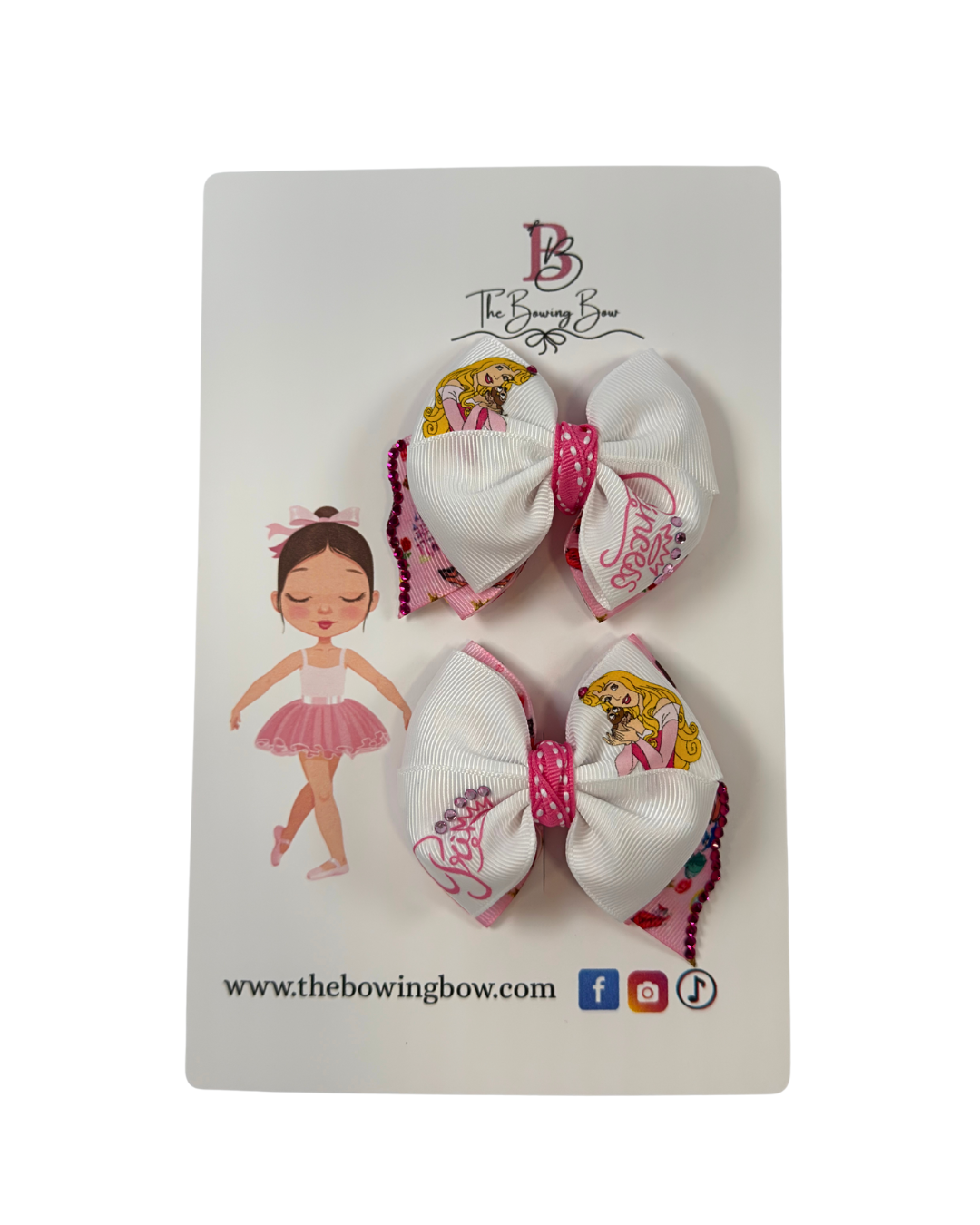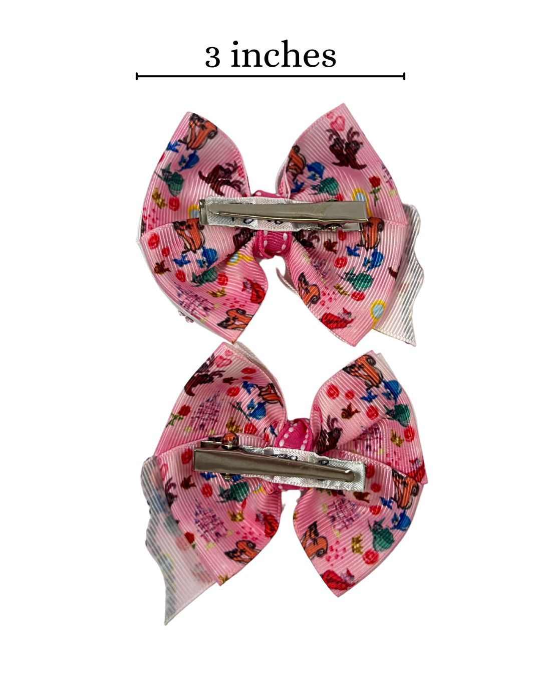 Mini princess Aurora pair of hair bows. Measures 3 inches each and are the perfect size for any age. If you need a nylon headband to wear them on your baby please make sure to add it to your order.
