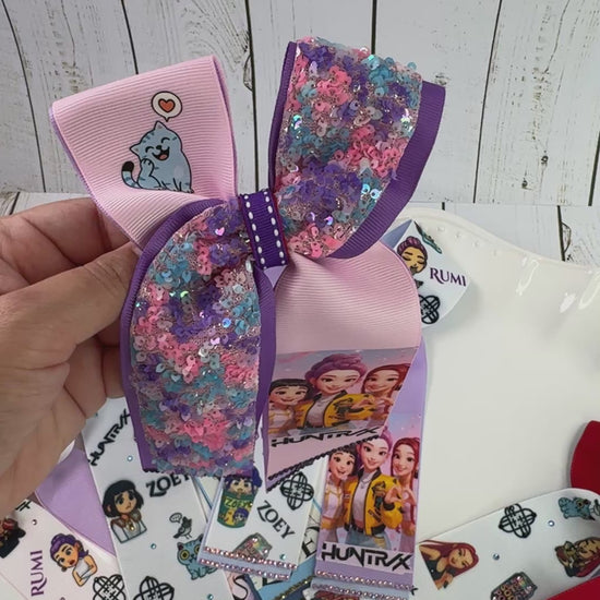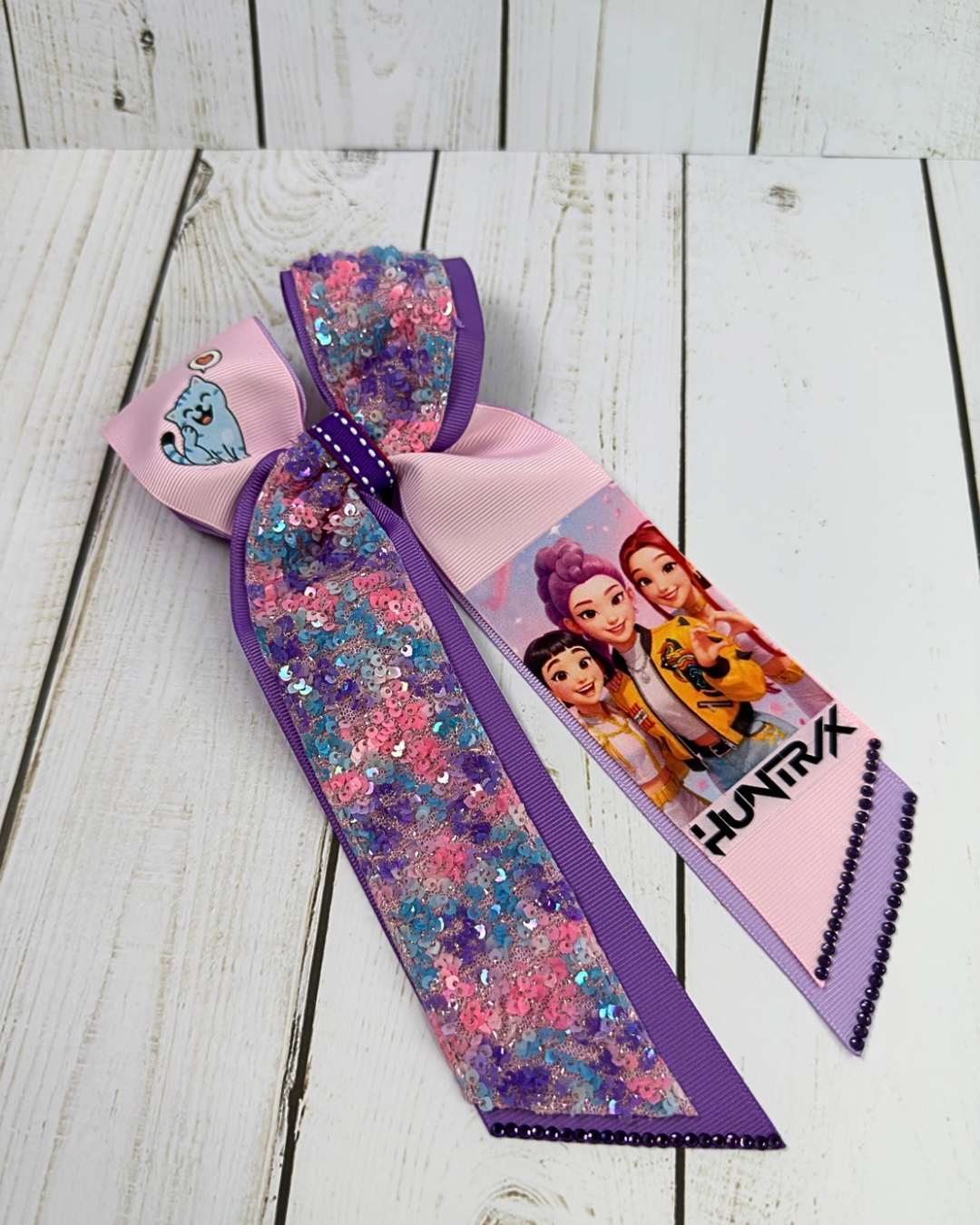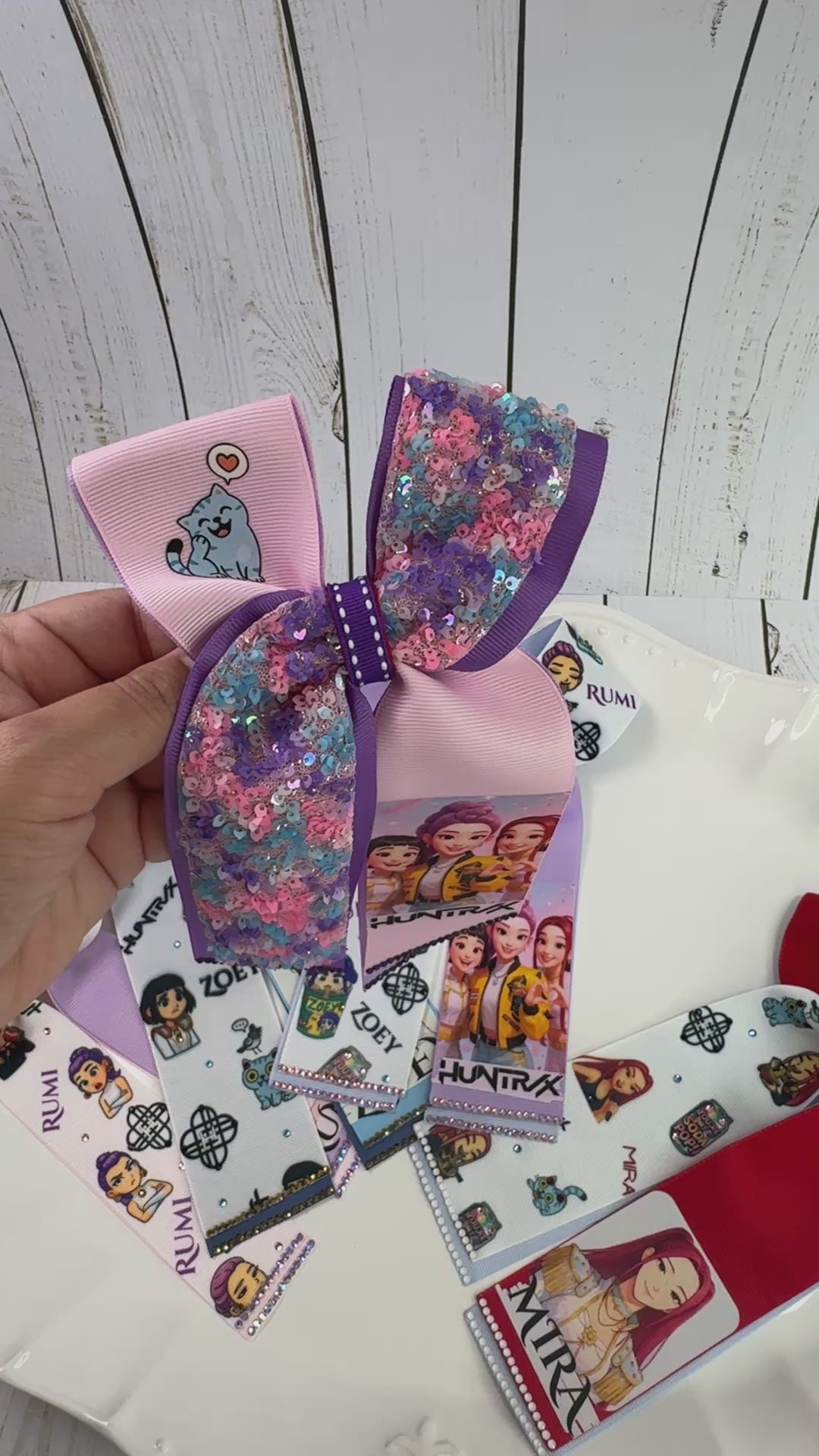 Beautiful Handcrafted Hair Bow with Sequins on one side.