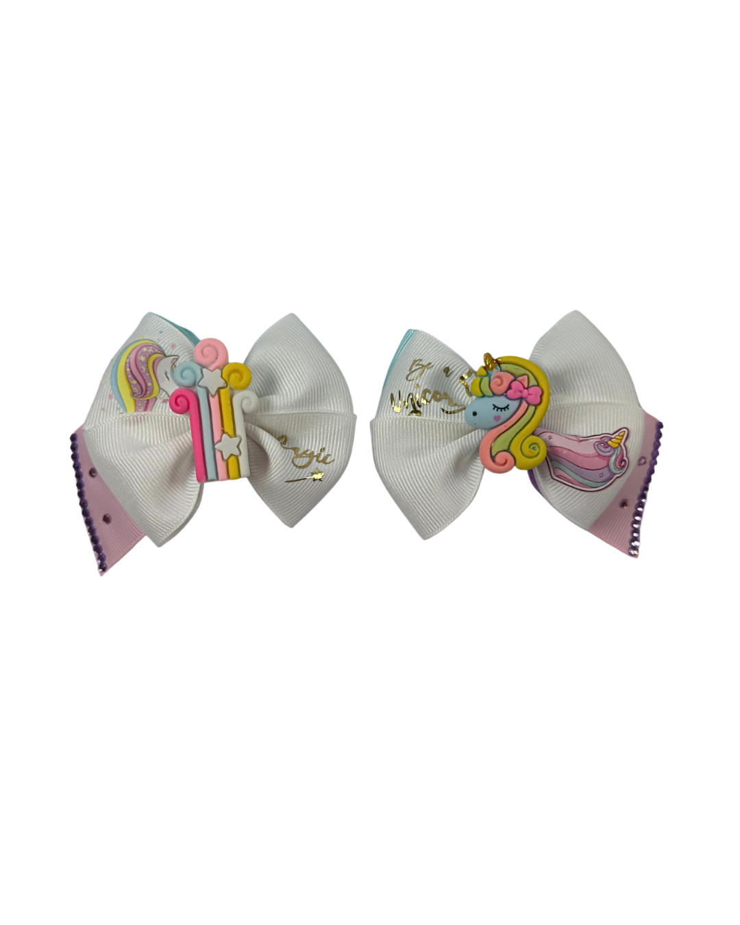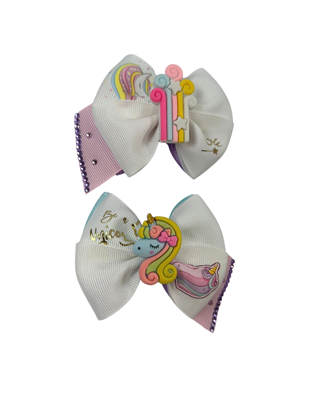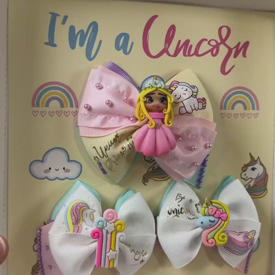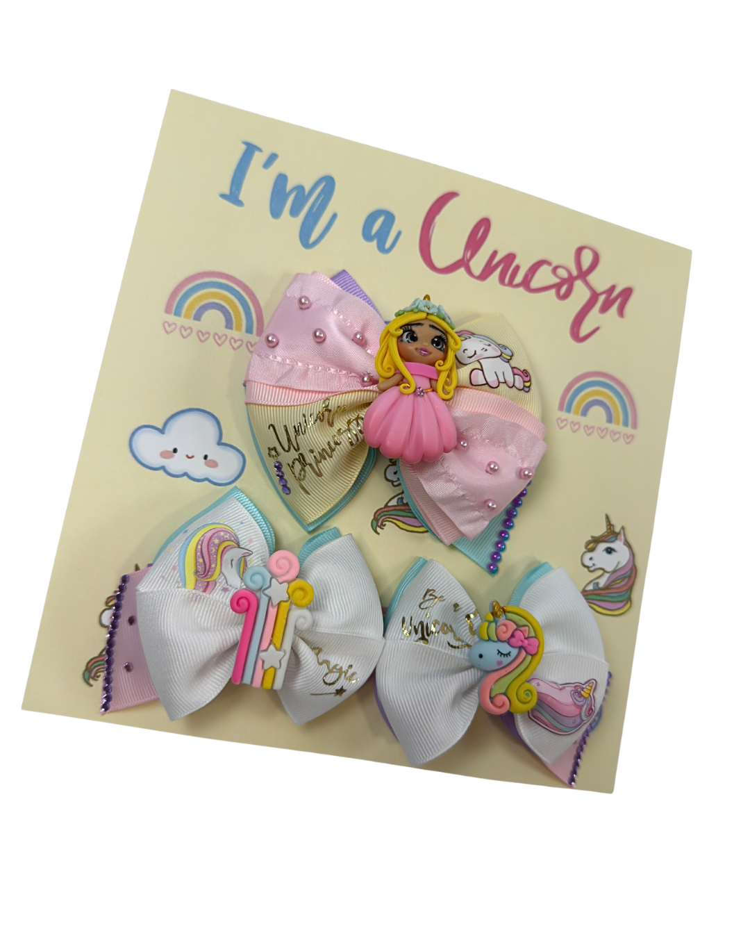 Unicorn princess small set. Hair Bow is small measures 4 inches wide. And the tiny pair measures 3 inches wide. You can order either one or the whole set.