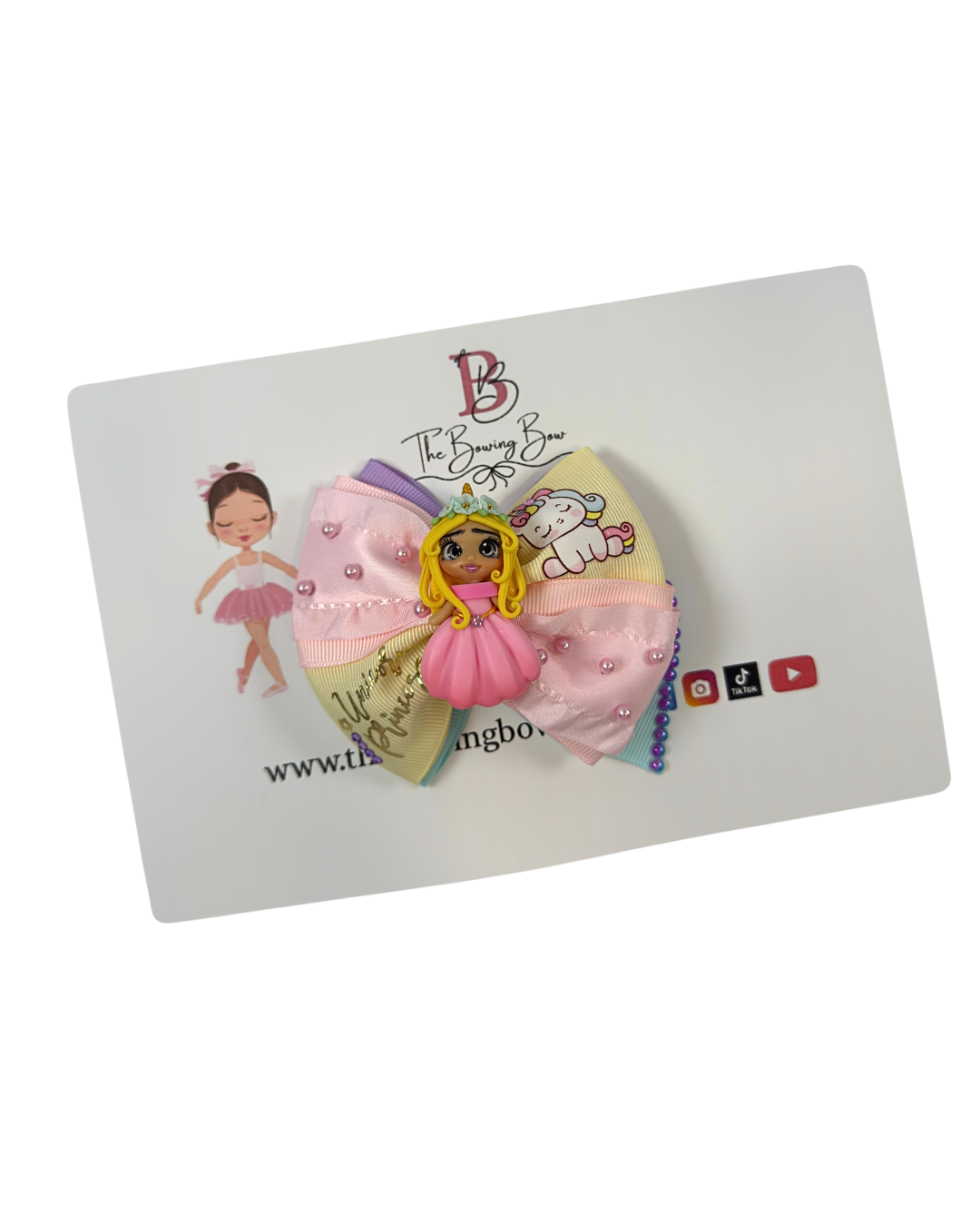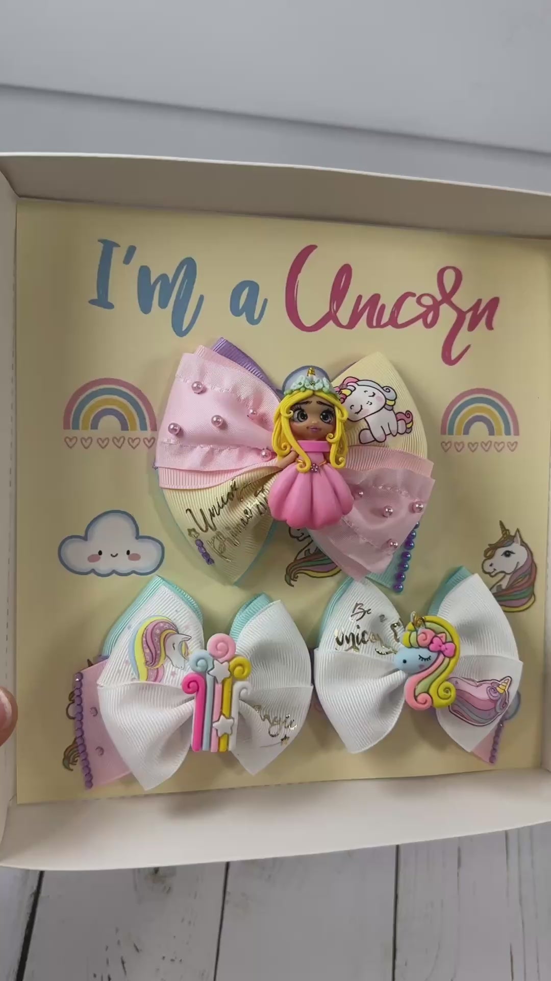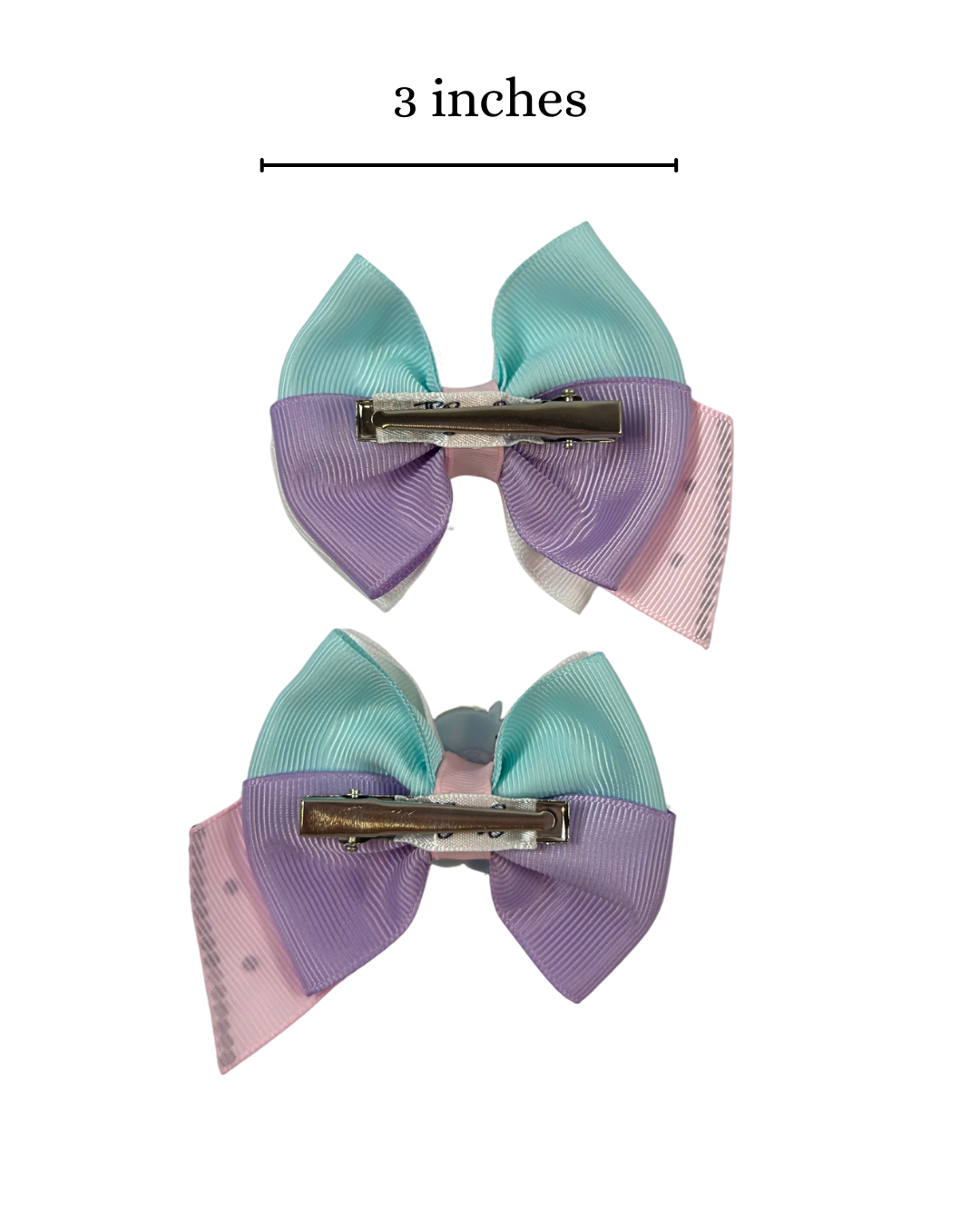 Unicorn princess small set. Hair Bow is small measures 4 inches wide. And the tiny pair measures 3 inches wide. You can order either one or the whole set.