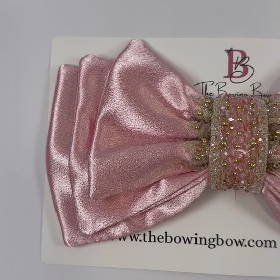 Pink Ballerina Hair Bow with Beads